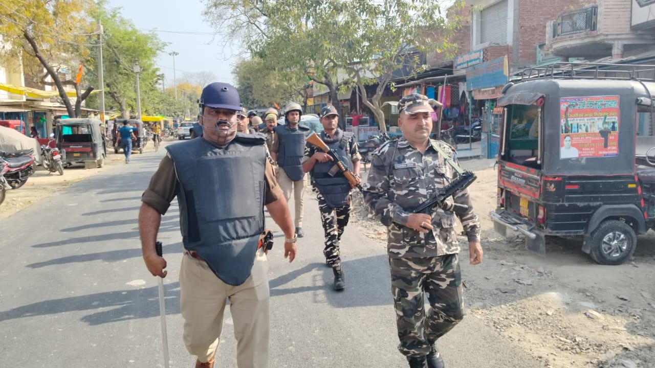 आगामी त्यौहारों और चुनाव को मद्दे नजर रखते हुए थाना अध्यक्ष प्रदीप कुमार ने एसएसबी जवानों के साथ किया फ्लैग मार्च।