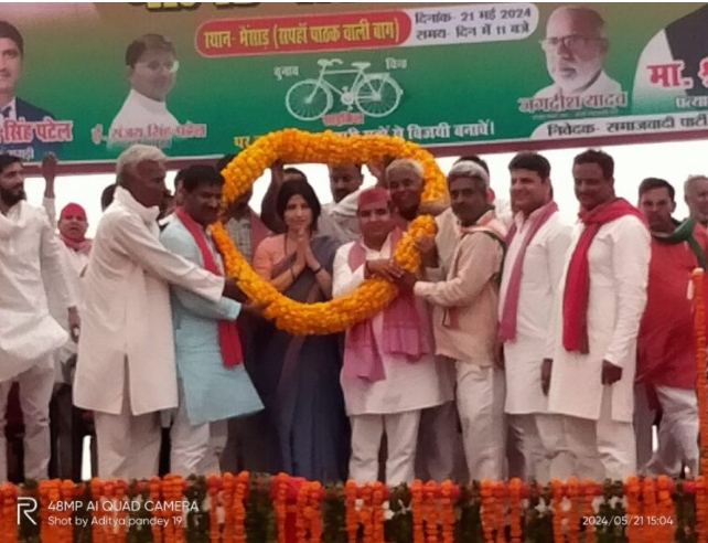 आजमगढ़। आज आजमगढ़ में एक सभा को संबोधित करते हुए श्रीमती डिंपल यादव ने लोगों से अपील की अधिक से अधिक संख्या में मतदान स्थल पर पहुंचकर समय से मतदान करें और सही समय है 7 से 12। उन्होंने कहा कि सात से बारह तक आप सभी समाजवादी पार्टी के पक्ष में वोट डालकर अधिक से अधिक मतों से धर्मेंद्र यादव जी को विजय बनाएं। उन्होंने कहा कि भाजपा सरकार से सभी त्रस्त हैं चाहे वह किसान हो, नौजवान हो, महिलाएं हो,या बेरोजगार युवा हो। उन्होंने अपील की इस बार के चुनाव में इंडिया गठबंधन एक बड़ी पार्टी के रूप में सामने आ रही है अब भाजपा को सत्ता छोड़नी ही होगी इसलिए आज हम आप सभी से अपील करते हैं कि आने वाले 25 तारीख के चुनाव को लेकर समाजवादी पार्टी के सभी कार्यकर्ता पूरी ईमानदारी और लगन के साथ लग जाए और धर्मेंद्र यादव जी को अधिक से अधिक वोटों से जीत दिलाएं।