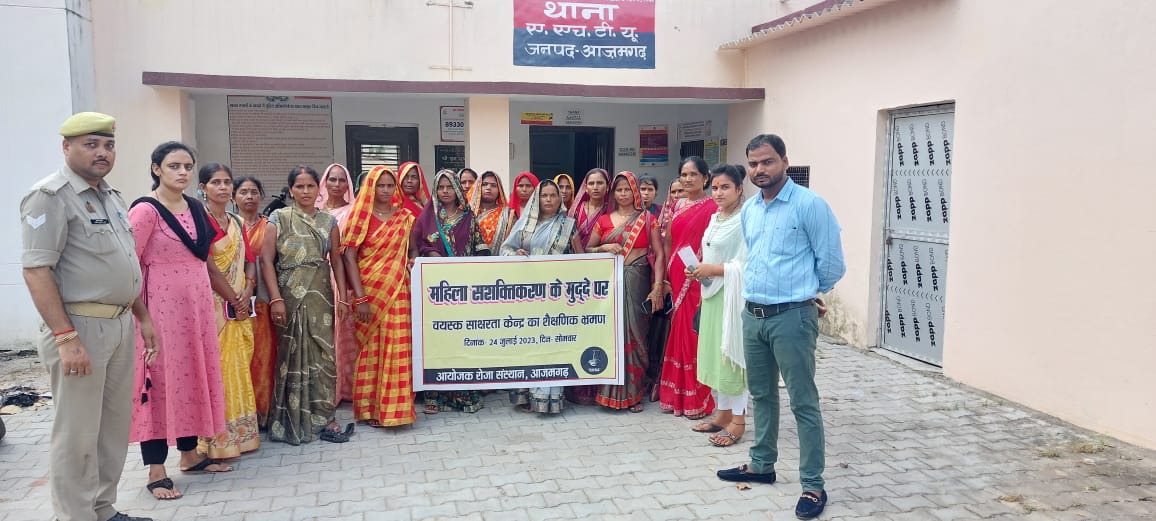 आज दिनांक 24-07-2023 को रोजा संस्थान आजमगढ द्वारा ग्रामीण क्षेत्र महिलाओं के लिए चलाए जा रहे वयस्क साक्षरता केंद्र का महिला सशक्तिकरण के मुद्दे पर एक्सपोजर विजिट, वन स्टॉप सेंटर, महिला थाना, एवं थाना एंटी ह्यूमन ट्रैफिकिंग के साथ किया गया , जिसमे वन स्टॉप सेंटर की सेंटर मैनेजर सरिता पाल जी द्वारा महिलाओ के लिए बने वन स्टॉप सेंटर के बारे में विस्तार से चर्चा किया गया, इसी क्रम में महिला थाना प्रभारी द्वारा मिशन शक्ति, 1090, के मुद्दो पर जानकारी प्रदान किया गया साथ ही एंटी ह्यूमन ट्रैफिकिंग के राजेश वर्मा द्वारा द्वारा एंटी ह्यूमन ट्रैफिकिंग थाना के कार्यों के बारे में बताया गया साथ ही बाल तस्करी की रोकथाम विभिन्न प्रकार के धाराओं के बारे में जानकारी दी गई। इस कार्यक्रम में जिला समन्वय अर्पित श्रीवास्तव, संध्या सिंह, मो० इरफ़ान खान, रीना देवी, दिव्या पाण्डेय, प्रेमशीला देवी, आदि लोग उपस्थिति रहे