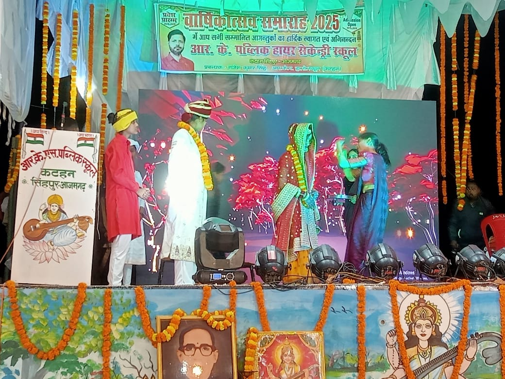 मेंहनगर, आजमगढ़। मेहनगर तहसील क्षेत्र के आर के पब्लिक स्कूल कटहन सिंहपुर आजमगढ़ में धूमधाम से मनाया गया वार्षिक उत्सव। इस कार्यक्रम के मुख्य अतिथि खंड विकास अधिकारी मेंहनगर श्वेतांक सिंह रहे। कार्यक्रम की शुरुआत सर्वप्रथम मां सरस्वती के चित्र पर माल्यार्पण कर दीप प्रज्ज्वलित कर की गई। इस कार्यक्रम में नन्हे मुन्ने बच्चों के द्वारा बेहद ही आकर्षक सांस्कृतिक प्रोग्राम प्रस्तुत किया गया। इस कार्यक्रम में बच्चों के द्वारा सरस्वती वंदना, विद्यालय गीत, नाटक, नृत्य, और कवि सम्मेलन के द्वारा लोगों को आकर्षित किया गया। इस अवसर पर विद्यालय की प्रबंधक राजेश कुमार सिंह ने कहा कि हमारे विद्यालय में कड़े अनुशासन के साथ-साथ अच्छी शिक्षा प्रदान की जाती है जिससे आने वाले समय में बच्चों का भविष्य उज्जवल हो सके और हमारे साथ जो भी अभिभावक जुड़े हुए हैं उन्हें उनकी सोच के अनुसार उनके बच्चों को शिक्षा प्रदान की जाती है। समय-समय पर प्रतियोगी परीक्षाएं भी कराई जाती है जिससे बच्चों को आने वाले समय में प्रतियोगी परीक्षाओं में भाग लेने पर आसानी से सफलता प्राप्त हो सके। इसी क्रम में विद्यालय में इंग्लिश स्पोकन की एक प्रतियोगिता पिछले दो महीनों से चल रही थी जिसमें टाप तीन विद्यार्थीयों को प्रथम द्वितीय और तृतीय के साथ-साथ दो और विद्यार्थियों को सांत्वना पुरस्कार भी दिया गया। इस अवसर पर विद्यालय के प्रधानाचार्य जयप्रकाश श्रीवास्तव,उप प्रधानाचार्य शैलेंद्र प्रसाद ने बताया कि विद्यालय में उच्च शिक्षा प्रदान करने के लिए हम सभी अध्यापकों के साथ मिलकर के एक रणनीति तैयार कर विद्यार्थियों को अच्छी शिक्षा प्रदान करने का पूरा प्रयास करते हैं जिसमें सभी अध्यापकों का पूर्ण योगदान रहता है। इसअवसर पर विद्यालय के सभीअभिभावक और पूरा विद्यालय परिवार उपस्थित रहा।