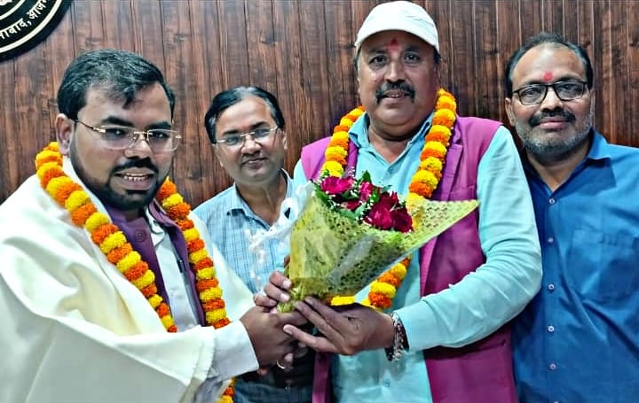 आजमगढ़:आइडियल जर्नलिस्ट एसोसिएशन के राष्ट्रीय महासचिव साहित्यकार संजय कुमार पांडे ने उप जिलाधिकारी निजामबाद संत रंजन के कार्यालय पहुंचकर संगठन द्वारा सम्मान पत्र एवं डॉ अजय पांडे एवं समाजसेवी द्वारा अंग वस्त्र एवं माल्यार्पण का सम्मानित किया गया। इस अवसर पर राष्ट्रीय महासचिव