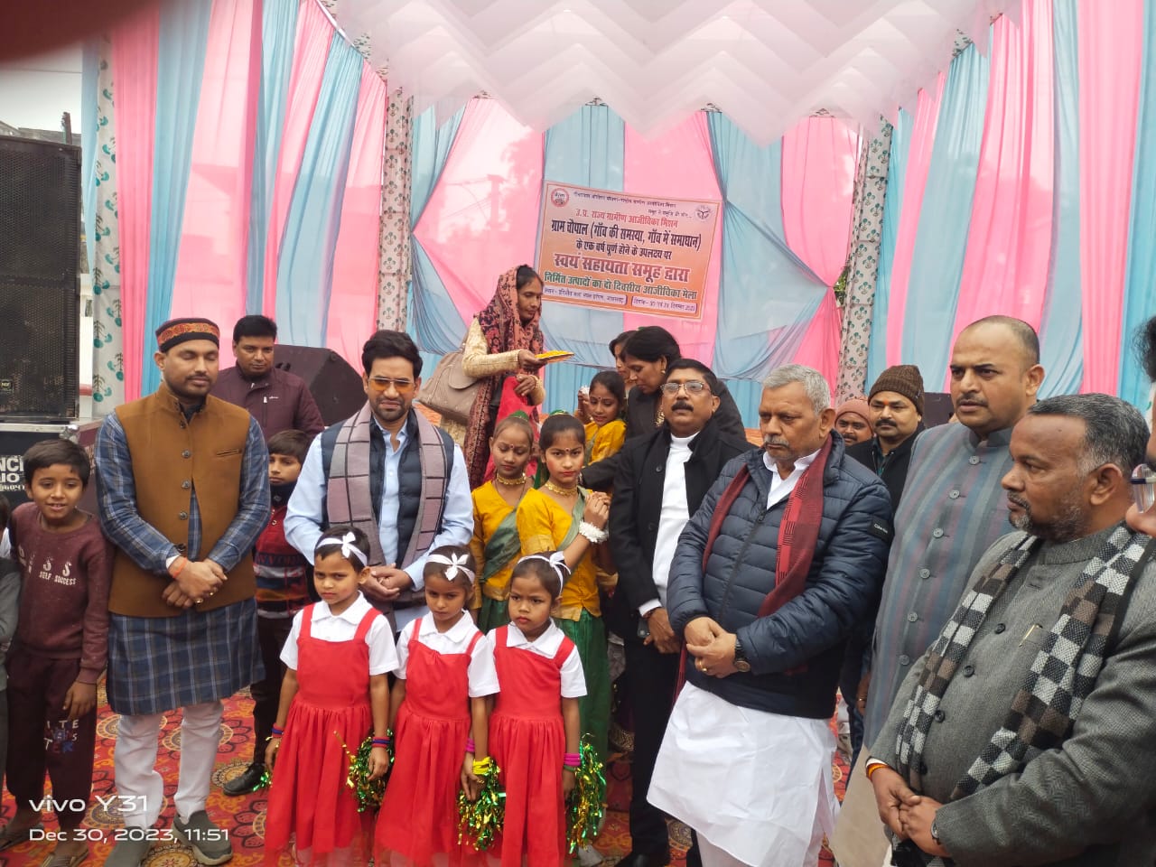 ग्राम चौपाल (गांव की समस्या, गांव का समाधान) के एक वर्ष पूर्ण होने के उपलक्ष्य में राष्ट्रीय ग्रामीण आजीविका मिशन योजनान्तर्गत जनपद के हरिऔध कला केन्द्र के प्रांगण में शनिवार को आजीविका मेले का उद्घाटन भाजपा सांसद आजमगढ़ दिनेश लाल यादव “निरहुआ’ द्वारा किया गया।