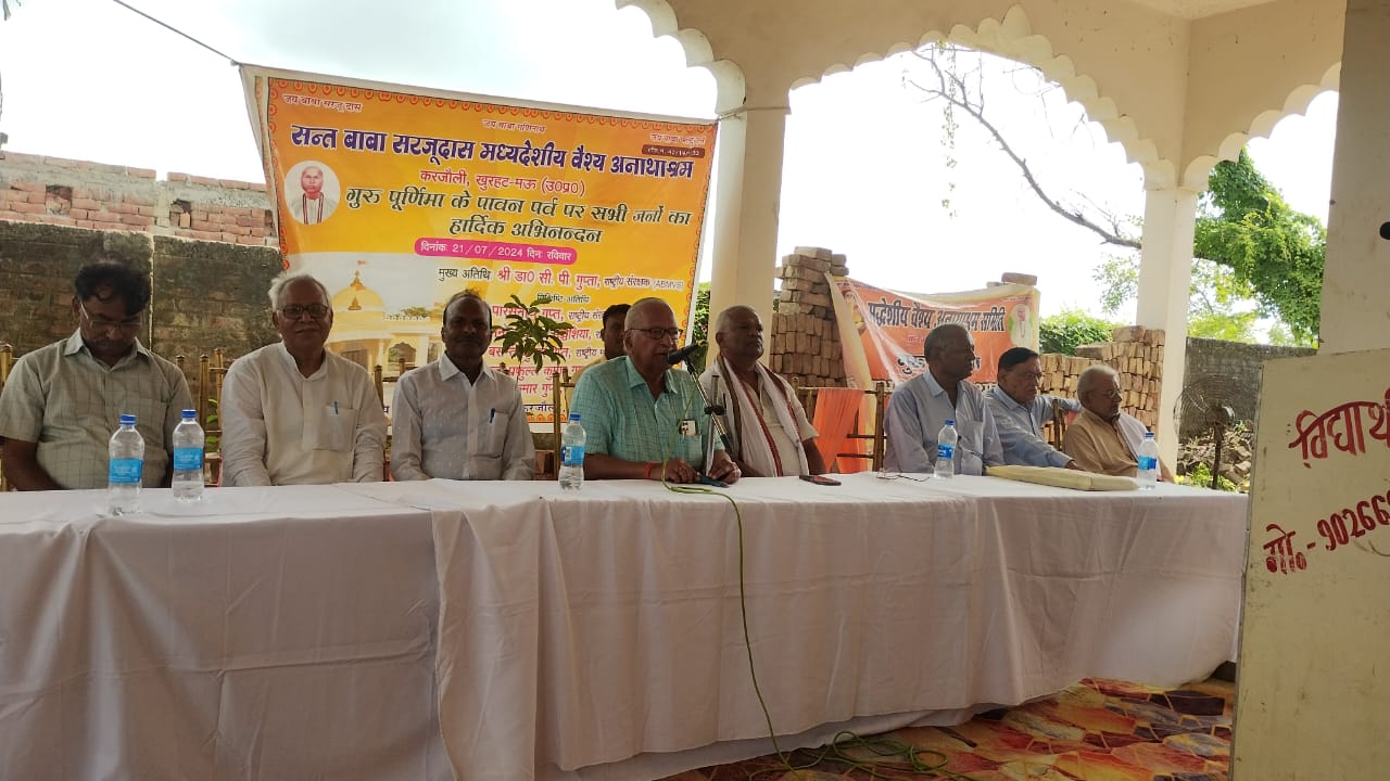 गुरू शब्द में गु का अर्थ गुफा अर्थात अंधकार से रू अर्थ रोशनी अर्थात जो अंधकार से प्रकाश के तरफ ले जाए वही गुरु है मनुष्य के जीवन में पहला गुरु मां होती है ।उक्त विचार है मध्यदेशीय समाज के राष्ट्रीय अध्यक्ष डा सी पी गुप्ता के ।वे खुरहट करजौली स्थित बाबा सरजू दास मध्यदेशीय वैश्य अनाथाश्रम में गुरु पूर्णिमा महोत्सव के अनंतर बतौर मुख्य अतिथि उक्त विचार व्यक्त कर रहे थे । डा गुप्त ने कहा कि भारत के तीन धरोहरों में करजौली आश्रम का स्थान सर्वोपरि है ।इस अवसर पर वैश्य समाज के राष्ट्रीय महामंत्री गण बसंत गुप्ता व प्रफुल्ल कुमार एडवोकेट ने संबोधित करते हुए कहा कि बाबा सरजू दास की तपोस्थली को हरा भरा करने का संकल्प हम सभी को लेना चाहिए।इस अवसर पर प्रातः काल से ही जनपद के अतिरिक्त गाजीपुर बलिया देवरिया महाराज गंज आजमगढ़ से भक्तो का रेला दर्शन के लिए लग गया ।यज्ञ हवन के पश्चात कार्यक्रम का शुरुआत बाबा के चित्र पर अतिथियों द्वारा पुष्पर्चन से हुआ ।इस अवसर पर आश्रम अध्यक्ष अनूप चंद गुप्त ने सभी अतिथियों का स्वागत अभिनंदन किया । कार्यक्रम को उमेश चंद पारस नाथ गुप्त रामदास गुप्त कुबेर गुप्त डा रामगोपाल गुप्त आदि दर्जनों लोगों ने संबोधित कर गुरु पूर्णिमा का शुभकामनाएं दिया ।अंत में सभी लोगो ने गुरु के नाम पर एक एक पौधा लगाने का संकल्प लिया ।इस अवसर पर मुख्य रूप से राधेकांत गुप्ता विजय कुमार डा रामगोपाल गुप्त गिरीश चंद गुप्त अभिसेक मद्धेशिया प्रिंस गुप्त रवि गुप्त उमेश गुप्त बैजनाथ गुप्त वेद प्रकाश गुप्त गौरव मद्धेशिया सुधीर गुप्ता धर्म देव मद्धेशिया समेत सैकड़ों लोग मौजूद रहे।इस अवसर पर शिविर लगा कर मुफ्त दवा वितरण किया गया ।