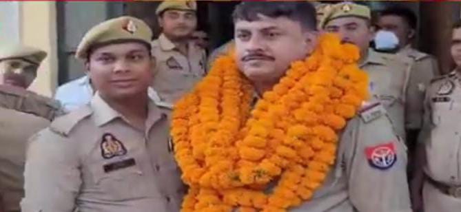 सगड़ी/आजमगढ़:जीयनपुर कोतवाली में लगभग डेढ़ वर्षो से कोतवाल रहे यादवेंद्र पांडे ने जहां अपने कार्य कुशलता से अपने अधिकारियों का दिल जीता वही अपने मधुर व्यवहार से क्षेत्रीय जनता में अपार लोकप्रियता हासिल किया जैसे ही उनके स्थानांतरण की खबर आई लोगों में मायूसी छा गई आज सुबह उनकी विदाई ढोल ताशे फूल मालाओं के द्वारा पुलिस कर्मियों व क्षेत्रीय जनता के द्वारा किया गया इस विदाई समारोह में कोतवाल यादवेंद्र पांडे का आंख भर आया जिससे वहां उपस्थित जन समुदाय के आंखों में भी आंसू आ गए,इस तरह से विदाई समारोह को देखकर यादवेंद्र पांडे ने कहा कि इस क्षेत्र की जनता का भरपूर सहयोग और प्यार हमें मिलता रहा है इसे मैं हमेशा याद रखूंगा l विदाई समारोह में जहां उनके कार्यों की तारीफ की गई वहीं उनके अग्रिम कार्य के लिए शुभकामना भी दिया गया ,