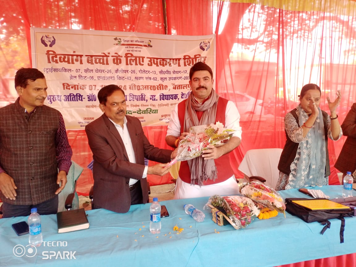 देवरिया। ब्लॉक संसाधन केंद्र औरा चौरी पर दिव्यांग बच्चों के लिए उपकरण वितरण शिविर का आयोजन किया गया। कार्यक्रम के मुख्य अतिथि सदर विधायक डॉ. शलभ मणि त्रिपाठी थे। कार्यक्रम का शुभारंभ विधायक और जिला बेसिक शिक्षा अधिकारी (बीएसए) श्रीमती शालिनी श्रीवास्तव ने सरस्वती और डॉक्टर सर्वपल्ली राधाकृष्णन की प्रतिमा पर माल्यार्पण और दीप प्रज्ज्वलन के साथ किया।