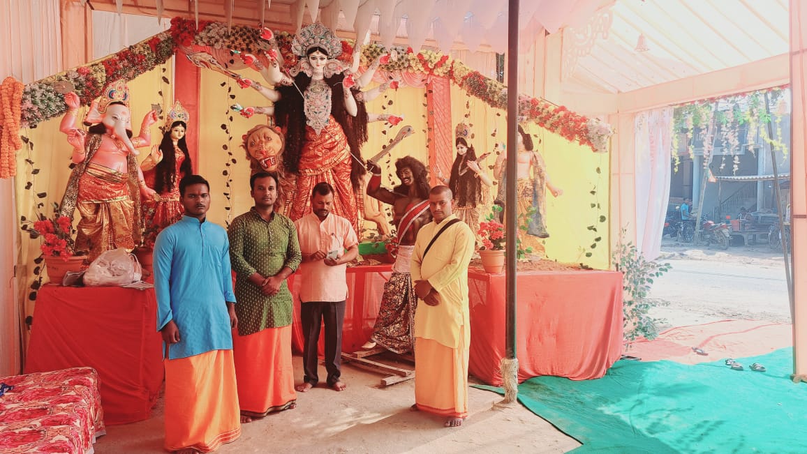 दुर्गा पूजा पंडाल में चार दिवसीय श्री राम कथा में दूसरे दिन शिव पार्वती विवाह का वर्णन किया गया