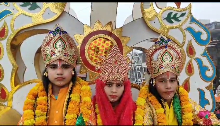 गंभीरपुर/ आजमगढ़। खंड कार्यकारिणी महेशपुर (मुहम्मदपुर )के नेतृत्व में रविवार को महादेव मंदिर गंभीरपुर से गाजे बाजे के साथ भव्य शोभायात्रा निकाली गई जो पुरे बाजार का भ्रमण करते हुए पुलिस चौकी के बगल मे जाकर समाप्त हुई। जानकारी के मुताबिक खंड कार्यकारिणी महेशपुर के नेतृत्व में रविवार को दोपहर 12:00 बजे भव्य शोभायात्रा निकाली गई जिसमें रथ पर श्री राम, लक्ष्मण, सीता जी की भव्य झांकी के साथ पूरे गंभीरपुर का भ्रमण किया गया। शोभायात्रा में साथ चल रहे राम भक्त गर्जना के साथ जय श्री राम के जयकारे लगाते रहे। जिससे कि पूरा क्षेत्र भक्तिमय में माहौल में डूब गया था। रथ पर सवार श्री राम लक्ष्मण व सीता जी की झांकी का जगह-जगह लोग तिलक, चंदन माल्यार्पण कर पूजन अर्चन कर रहें थे। इस मौके पर कार्तिक मिश्रा, रूप नारायण उपाध्याय,आशीष श्रीवास्तव,ब्लॉक प्रमुख विजय विश्वकर्मा, विजय मिश्रा ,राकेश सिंह,मनीष मौर्य,पद्माकर मिश्रा, अंकित चतुर्वेदी, राकेश मौर्य,करुड़ाकर मिश्रा, वीरेंद्र पाठक, इन्द्रेश राय, आशुतोष मिश्रा, ग्राम प्रधान संतोष कुमार, शशिकांत उपाध्याय उर्फ डब्लू मास्टर, इंजिनियर संजय यादव,संदीप सोनी, सुभाष यादव, रामलीला समिति के अध्यक्ष विजय गुप्ता, श्याम सुंदर सिंह, शारदा गुप्ता, संतोष गुप्ता, पवन गुप्ता, रमन यादव, सूर्यमणि मिश्रा, अनुज गुप्ता, हेमंत मोदनवाल, अमित मोदनवाल, शुभम मोदनवाल, संजय यादव, मंडल अध्यक्ष मुन्ना चौहान, पूर्व मंडल अध्यक्ष अवधेश चौहान, अरविंद यादव पिंटू, उग्रसेन चौहान, अखिलेश राय, अतुल गिरी,ऋषभ ठठेरा, अनिल चौरसिया,राहुल पाण्डेय समेत अनेक लोग उपस्थित रहें।