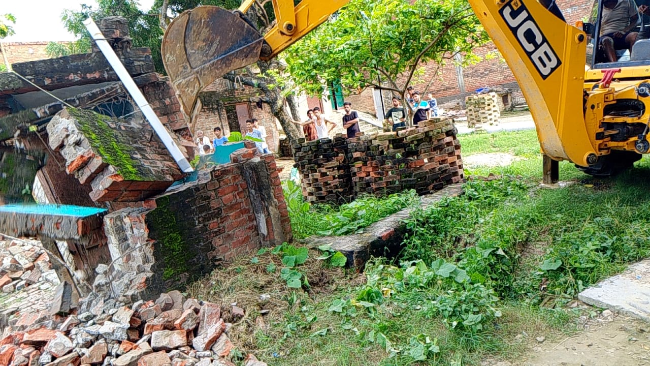 निजामाबाद तहसील क्षेत्र के ग्राम सभा सुराई में पोखरी की जमीन पर अवैध रूप से गांव निवासी नसीम पुत्र ऐनुल द्वारा विगत कई वर्षों से अवैध कब्जा करके पक्का मकान बनाकर रह रहे थे जबकि सन 2019 में 15 सी की रिपोर्ट लगने के बाद 2021 में बेदखली का आदेश भी हो चुका था गांव के लोगों को पानी बहाने की समस्या होने पर गांव के अतीक पुत्र हकीमुद्दीन द्वारा तहसील दिवस पर प्रार्थना पत्र देकर अतिक्रमण हटाने की मांग की थी जिस पर अधिकारियों द्वारा मौके का स्थलीय निरीक्षण करवा कर नापी करके 15 दिन पूर्व नोटिस चश्पा कर दिया गया था नोटिस मिलने के बाद अतिक्रमण कर्ता द्वारा शुक्रवार को बाउंड्री वॉल और गेट तोड़कर हटा लिया गया था लेकिन आज शनिवार को नायब तहसीलदार मय फोर्स मौके पर जाकर बाकी बचे हुए कब्जे को जेसीबी से ढहा दिया l इस मौके पर नायब तहसीलदार आदर्श सिंह कानूनगो अच्छे लाल यादव लेखपाल हिमांशु सोनकर, और कमलेश यादव मौके पर उपस्थित रहे l