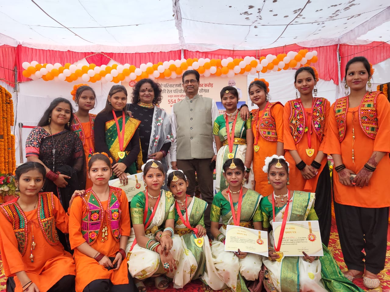 प्रधानमंत्री नरेंद्र मोदी जी ने आज 26 फरवरी 2024 को वीडियो कॉन्फ्रेंसिंग के माध्यम से पूरे देश में अमृत भारत स्टेशन के अंतर्गत 554 से ज्यादा स्टेशनों के पुनर्विकास का शिलान्यास किया।इसके साथ ही उन्होने देश भर के 1585 से अधिक नवनिर्मित रोड बीवी ओवर ब्रिज और आरयूबी/एलएचएस का लोकार्पण भी किया।इस अवसर पर सोनीधापा खण्डेलवाल बालिका इंटर कॉलेज ने मऊ रेलवे स्टेशन पर आयोजित भव्य कार्यक्रम में सांस्कृतिक कार्यक्रम दे कर मंत्रमुग्ध कर दिया। माननीय मंत्री ए के शर्मा जी तथा मऊ व वाराणसी रेलवे के वरिष्ठ अधिकारियों की उपस्थिति में सोनीधापा की सांस्कृतिक प्रभारी ऋचा त्रिपाठी के निर्देशन में बच्चियों ने स्वागत गीत, प्रार्थना गीत समूह नृत्य, युवा प्रेरणादायक समूह नृत्य तथा इंडियन रेलवे पर गायन प्रस्तुत किया।स्वागत गीत स्निग्धा पांडे, इंडियन रेलवे गीत रुचि त्रिपाठी , प्रेरणादायक समूह नृत्य रजनी त्रिपाठी,अंजली कश्यप,आयुषी रावत, खुशबू भारती,खुशी मद्धेशिया, सृष्टि सिंह ने तथा प्रार्थना गीत समूह नृत्य तान्या मद्धेशिया,निशु मद्धेशिया, नैंसी कनौजिया,वंशिका भारती, दीपिका ने प्रस्तुत करके सबको भाव विभोर कर दिया। बच्चों को तथा उनकी मार्गदर्शक अध्यापिका ऋचा त्रिपाठी को माननीय ए के शर्मा जी ने मेडल एवं सर्टिफिकेट देकर सम्मानित किया तथा आशीर्वचन दिए।अमृत भारत स्टेशन योजना के तहत इन स्टेशनों पर भविष्य में यात्रियों की सुविधा, सुगमता व सुरक्षा को ध्यान में रखते हुए आवश्यकतानुसार स्टेशन भवन, प्रवेश एवं निकास द्वार, फुटओवर ब्रिज, बैठने की व्यवस्था, पेयजल व्यवस्था, स्वच्छता व्यवस्था, और उद्घोषणा प्रणाली, सुंदरीकरण आदि आवश्यक विकास कार्य किया जाएगा।