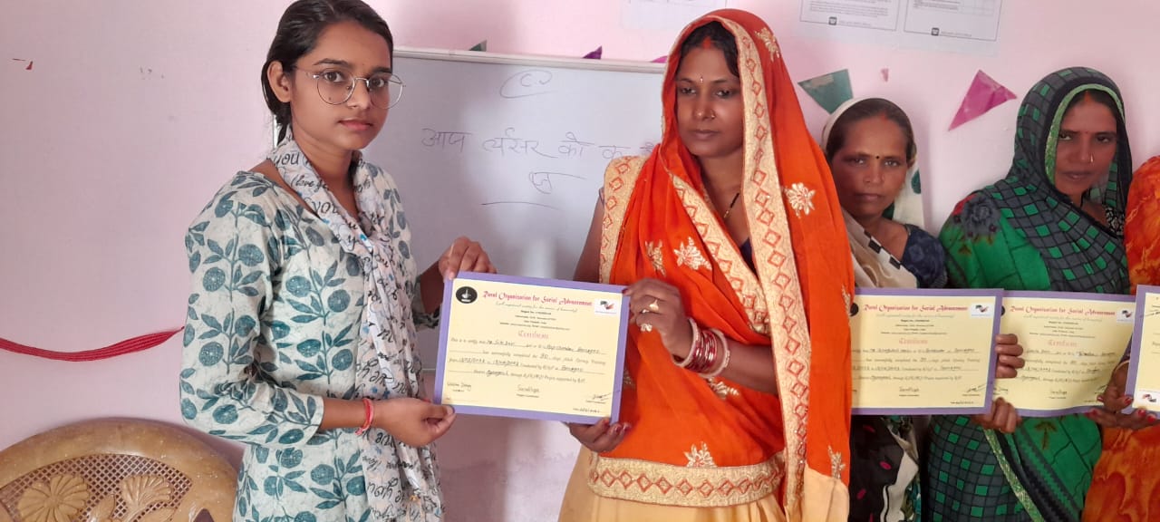 बोगरिया , आजमगढ़।जिले के तरवा ब्लॉक के ग्राम पंचायत बांसगांव में तथा जहानागंज ब्लॉक के ग्राम पंचायत अनई में निरक्षर महिलाओं को साक्षर बनाने की रोजा संस्थान के द्वारा पहल की गईं है रोजा संस्थान के द्वारा वयस्क साक्षरता केंद्र के नाम से नवाचार किया गया है जिसमें गांव के निरक्षर महिलाओं को बुलाकर साक्षर करने की शुरुआत की गई है वयस्क साक्षरता केंद्र का उद्देश्य उन लोगों और कमजोर व्यक्तियों को एक और अवसर प्रदान करना है जिन्हें अपना नियमित अध्ययन शुरू करने या जारी रखने का मौका नहीं मिला है, और साथ ही महिलाओं के साथ हो रहे फाइनेंसियल धोखाधड़ी को रोकना, अपने बच्चों के पढ़ाई का निगरानी करना, तथा मुद्दों को प्रभावित करने की क्षमता में वृद्धि करना जो उन्हें और उनके समुदाय को प्रभावित कर रहे हैं। वयस्क साक्षरता केंद्र में महिलाओं को अक्षर ज्ञान, शब्द ज्ञान, A, B, C, D, गणित भाषा का अध्ययन, वर्णमाला, तथा खेल गतिविधि के माध्यम से अन्य जानकारियां दी जा रही हैं। इसी क्रम में वयस्क साक्षरता केंद्र बांसगांव में जिन महिलाओ ने 90 दिन का कोर्स कम्प्लीट कर लिया था उनको सी0एच0ओ0 काजल यादव के द्वारा प्रमाण पत्र का वितरण किया गया इस कार्यक्रम में संध्या सिंह, शिखा दुबे, बद्री प्रसाद, बिंदू देवी, पूनम देवी, उषा देवी, रजनी देवी, सोनी देवी, सरोज देवी आदि महिलाओं ने प्रतिभाग किया।