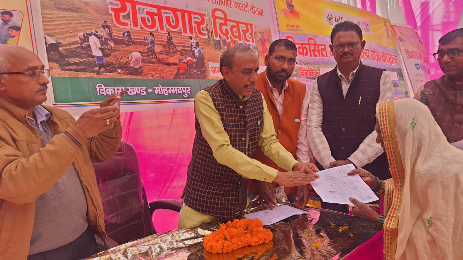 ब्लॉक मुहम्मदपुर के ग्राम पंचायत असीलपुर व विशुनपुर में विकसित भारत संकल्प यात्रा कार्यक्रम का आयोजन मंगलवार को किया गया कार्यक्रम में मुख्य अतिथि भाजपा नेता डॉ कृष्ण मुरारी विश्वकर्मा ने कहा कि भारत के प्रधानमंत्री नरेंद्र मोदी व मुख्यमंत्री योगी आदित्यनाथ लोगो को मुफ्त इलाज के लिए आयुष्मान कार्ड ,आवास, सबको शौचालय आदि की सुविधा देकर गांव को सुदृढ़ ,सुंदर व सशक्त बनाने का कार्य कर रहे हैं जिसका लाभ गांव के सभी गरीब को मिल रहा है चाहे किसी भी धर्म और संप्रदाय के हैं । उन्होंने कहा कि इसी के तहत सभी विभागों के अधिकारियों को गांव में भेज कर सभी योजनाओं का लाभ दिलाने के लिए एवं सरकार के योजनाओं को घर तक पहुंचाने के लिए संकल्पित हैं।प्रधान संघ के अध्यक्ष जियालाल यादव ने कहा कि गांव के लोगों को गांव में ही सभी सुविधाओं का लाभ मिले यह भारत सरकार की बहुत ही अच्छी पहल है।भाजपा मंडल अध्यक्ष अवधेश चौहान ने सभी विभागों के अधिकारियों और कर्मचारियों से कहा कि शासन की योजनाओं को हर एक आखिरी व्यक्ति तक पहुंचाने का कार्य करें।एडीओ पंचायत श्रवण कुमार ने विकसित भारत संकल्प यात्रा में शासन के दिशा निर्देशों को बताया और भारत को विकसित बनाने के लिए शपथ दिलाई। इस अवसर पर मुख्य रूप से एडीओ समाज कल्याण ऋषिकेश, एडीओ कृषि जयराम सिंह, कृषि प्राविधिक सहायक रामप्रीत, मुखराम ,ग्राम विकास अधिकारी रामचंद्र राम ,डॉ अजीत यादव, खंड प्रेरक अजय सिंह, प्रधान अरविंद यादव उर्फ पिंटू,, राजेंद्र यादव , सुरेंद्र कुमार योगी, लालमन यादव, अच्छेलाल, शिवलाल,अनन्त लाल, राम अवतार, जनार्दन,