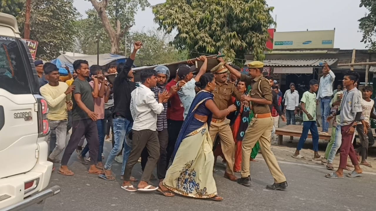 मऊ के सरायलखनसी थाने के सामने परिजनों ने संदिग्ध अवस्था में घायल युवक की मौत हो जाने पर सड़क जाम कर दिया