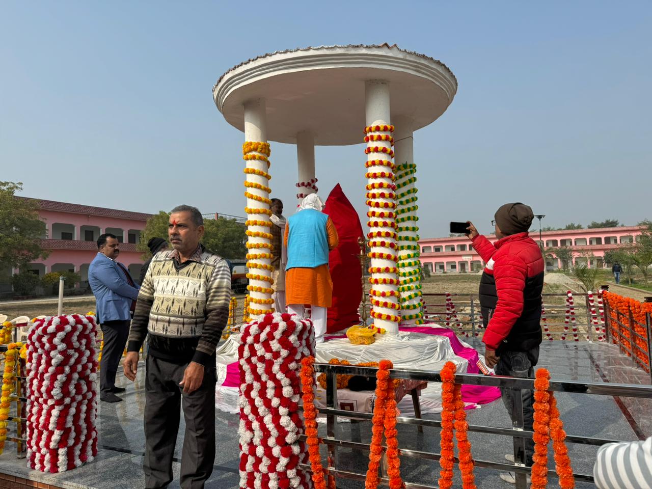 महाविद्यालय के प्रबंधक के पिता की पुण्यतिथि पर भव्य मूर्ति का हुआ अनावरण