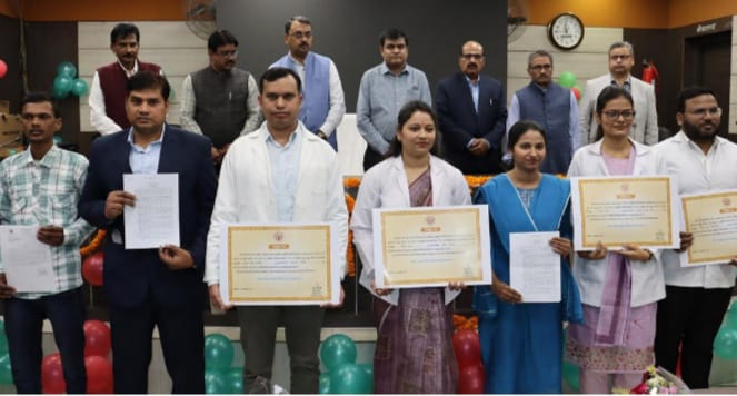 आजमगढ़। आज उत्तर प्रदेश के मुख्यमंत्री योगी आदित्यनाथ ने उत्तर प्रदेश लोक सेवा आयोग, उत्तर प्रदेश अधीनस्थ सेवा चयन आयोग एवं विद्युत सेवा आयोग द्वारा निष्पक्ष एवं पारदर्शी भर्ती प्रक्रिया के अंतर्गत चयनित कुल 1782 युवाओं को नियुक्ति पत्र का वितरण लोक भवन लखनऊ में किया। चयनित युवाओं में 852 उत्तर प्रदेश पावर कॉरपोरेशन, 391 आयुर्वेद चिकित्सा अधिकारी, 42 सहायक अभियोजन अधिकारी, 210 अवर अभियंता सिंचाई विभाग, 141 दंत चिकित्सक चिकित्सा विभाग, 14 समीक्षा अधिकारी हिंदी/उर्दू उत्तर प्रदेश सचिवालय, 123 अवर अभियंता आवास विभाग तथा 9 निरीक्षक राजकीय कार्यालय निरीक्षालय प्रयागराज के हैं। इसी क्रम में आज जनपद आजमगढ़ में आजमगढ़ मंडल के 13 आयुष विभाग, 11 चिकित्सा विभाग तथा विद्युत विभाग के 77 टेक्नीशियन पदों पर चयनित युवाओं को नियुक्ति पत्र का वितरण नेहरू हाल में मंडलायुक्त मनीष चौहान द्वारा किया गया। मंडलायुक्त ने नियुक्ति पत्र वितरण के पश्चात सभी चयनित युवाओं को बधाई एवं शुभकामनाएं दी। उन्होंने सभी चयनित युवाओं को पूरी निष्पक्षता ईमानदारी एवं निष्ठा के साथ अपने दायित्व का निर्वहन करने के लिए कहा।उन्होंने कहा कि सरकार की अपेक्षाओं पर खरे उतरे तथा अपनी जिम्मेदारियों एवं कर्त्तव्यों का सेवा में जब तक रहें, उसका निर्वहन करें। इस अवसर पर जिलाधिकारी विशाल भारद्वाज, मुख्य राजस्व अधिकारी विनय कुमार गुप्ता, मुख्य चिकित्साधिकारी डॉ0 आईएन तिवारी, अपर निदेशक स्वास्थ्य एवं चयनित अभ्यर्थीगण उपस्थित रहे।