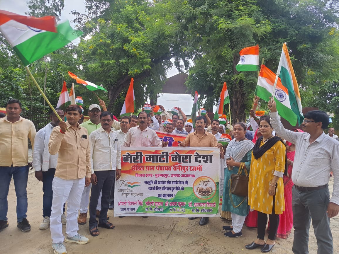 मेरी माटी, मेरा देश कार्यक्रम के तहत ब्लाक मुहम्मदपुर में कलश यात्रा डीजे व बाजे के साथ निकाली गई जो रसूलपुर, बनावे गंगापुर, टेकमलपुर, विसहम मिर्जापुर, बहोरापुर, मखदुमपुर, रामपुर अनदोई, गौरी ,शिवराजपुर, उमरी गनेशपुर ,मुजफ्फरपुर, रानीपुर रजमो, आदि गांव से होकर ब्लॉक मुहम्मदपुर में पहुंची जहां पर स्वतंत्रता संग्राम सेनानी के बने शिलापट्ट पर नतमस्तक हुई,ततपश्चात कलश ब्लाक में सुरक्षित रखा गया। खंड विकास अधिकारी डॉक्टर आराधना त्रिपाठी ने बताया कि मेरी माटी मेरा देश के तहत 3 अक्टूबर से विभिन्न गांव से कलश यात्रा निकाली जा रही है जो 11 अक्टूबर तक निकल जाएगी जिसका उद्देश्य स्वतंत्रता संग्राम सेनानियों को याद करना ,साथ ही साथ लोगों में देशभक्ति की भावना जागृति करना है ।इस अवसर पर मुख्य रूप से एडीओ आईएसबी प्रदीप कुमार श्रीवास्तव, एडीओ पंचायत श्रवण कुमार , ग्राम विकास अधिकारी बलिराम ,चांदनी शुक्ला, शिक्षा राय, वंदना सिंह ,खण्ड प्रेरक अजय सिंह,हरिकेश, अवधेश चौहान ,प्रधान संजय कनौजिया, राजेंद्र प्रसाद, वीर बहादुर, गुफरान ,कमल सिंह, मानसिंह ,रफीक उर्फ गुड्डू ,मो सउद, मोहन सरोज ,मो आबिद सुबाष यादव ,मानसिंह पटेल, राधेश्याम कुमार ,देवनारायण यादव, भारत कुमार ,अनिल आदि लोग उपस्थित थे।