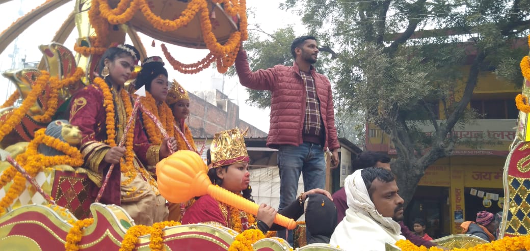 यह शोभायात्रा समाजसेवी अंशु सिंह सोनू सिंह कुंदन सिंह शुभम सिंह सुमेश सिंह के नेतृत्व में निकाल गई