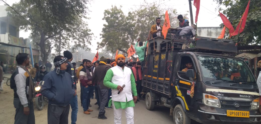 इस शोभायात्रा में लगभग 500 की संख्या में क्षेत्र वासियों ने जमकर जय श्री राम के नारे लगाए.