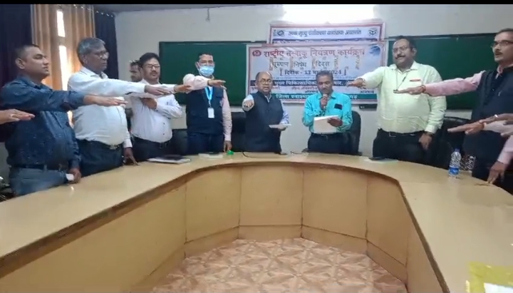 राष्ट्रीय तंबाकू नियंत्रण कार्यक्रम के तहत जिला चिकित्सालय के सभागार में दिलाई गई शपथ