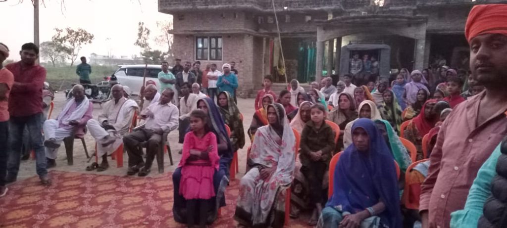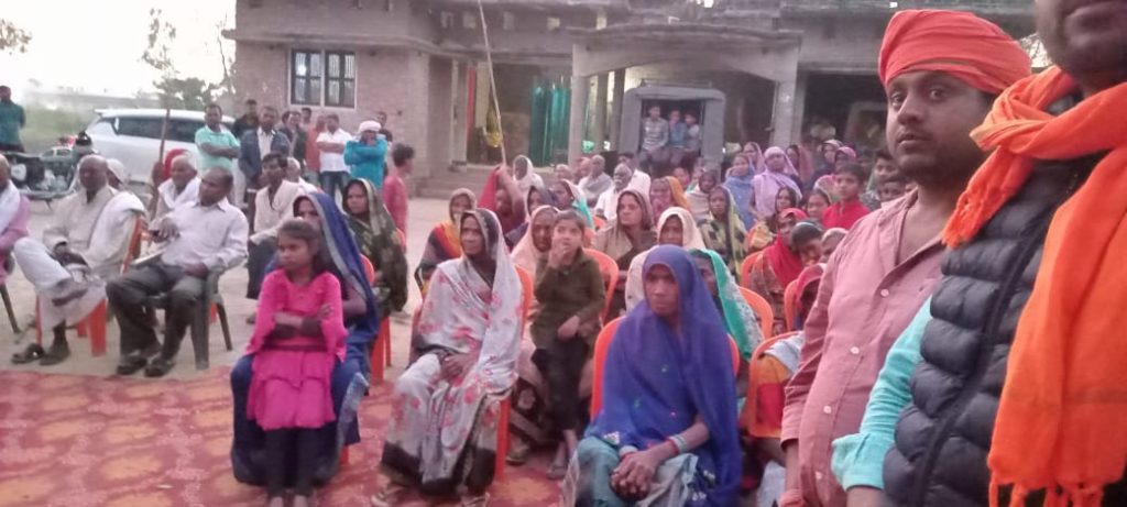 आजमगढ़ -मेहनगर विधानसभा क्षेत्र के रायपुर पट्टी ग्राम सभा मे भाजपा किसान मोर्चा के जिला मंत्री एवं पूर्व महा प्रधान कटहन राजेश कुमार सिंह ने चौपाल को संबोधित करते हुए बताया कि पूरे देश में योगी मोदी का लहर चल रहा है और डबल इंजन की सरकार पूरी तरह से गरीब बेसहारा, बुजुर्ग ,महिलाओं, नौजवानों एवं किसानों के लिए बेहतर कार्य कर रही है जिससे हर व्यक्ति खुशहाल है उन्होंने अपील किया कि मेहनगर विधानसभा क्षेत्र से श्रीमती मंजू सरोज को अधिक से अधिक वोटों से विजई बनाकर लखनऊ भेजने का आप सभी कार्य करें मैं वादा करता हूं कि क्षेत्र में जितने भी कार्य जो अभी तक अधूरे रह गए हैं इन सारे कार्यों को करवाने का मैं जिम्मा लेता हूं उन्होंने बताया कि केंद्र में भाजपा की सरकार और राज्य में भाजपा की सरकार ने मिलकर के पूरी तरह से विकास का कार्य किया है महिलाओं के लिए घर-घर शौचालय की व्यवस्था ,उज्जवला योजना के अंतर्गत घर-घर गैस की सिलेंडर की व्यवस्था, किसानों के खाते में पैसे ,नौजवानों के लिए नौकरियां और बुजुर्ग महिलाओं को पेंशन की व्यवस्था पूरी तरह से दुरुस्त चल रही है और आगे भी सरकार बनी तो और ज्यादा दुरुस्त व्यवस्थाएं आप सभी को मिलेंगे आने वाले 7 तारीख को आप सभी से विशेष अपील है कि हर बूथ पर अधिक से अधिक वोट देकर के कमल के निशान पर मोहर लगाकर के भाजपा के सभी प्रत्याशियों को ज्यादा से ज्यादा वोटो से आप सभी विजई बनावे ताकि हम सभी योगी जी को अपने मुख्यमंत्री के रूप में पुनः उसी स्थान पर पहुंचा दें जिससे पूरी तरह से गुंडाराज, कानून व्यवस्था ,बिजली व्यवस्था ,सड़क की व्यवस्था और ज्यादा दुरुस्त हो सके और हमारा देश विकास कर सके। इस अवसर पर सैकड़ों की संख्या में महिला और पुरुष उपस्थित रहे। इस अवसर पर मुख्य रूप से ग्राम प्रधान रायपुर पट्टी सोनू यादव, बलवंत वर्मा, बृजेश यादव, प्रकाश यादव, अमित कुमार सिंह , गोलू यादव, वीरेंद्र यादव, राजू सिंह, राकेश पटेल, सौरभ सिंह, सुधांशु सिंह सतीश सिंह, सिद्धार्थ सिंह आदि लोग उपस्थित रहे।