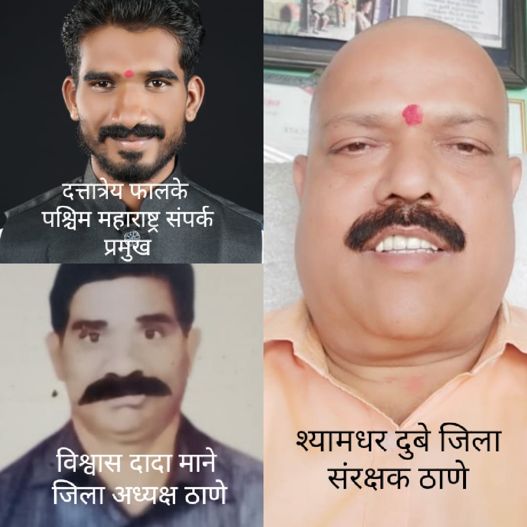 विश्वास दादा माने जिला अध्यक्ष ठाणे तथा श्यामधर दुबे जिला संरक्षक ठाणे होंगे।