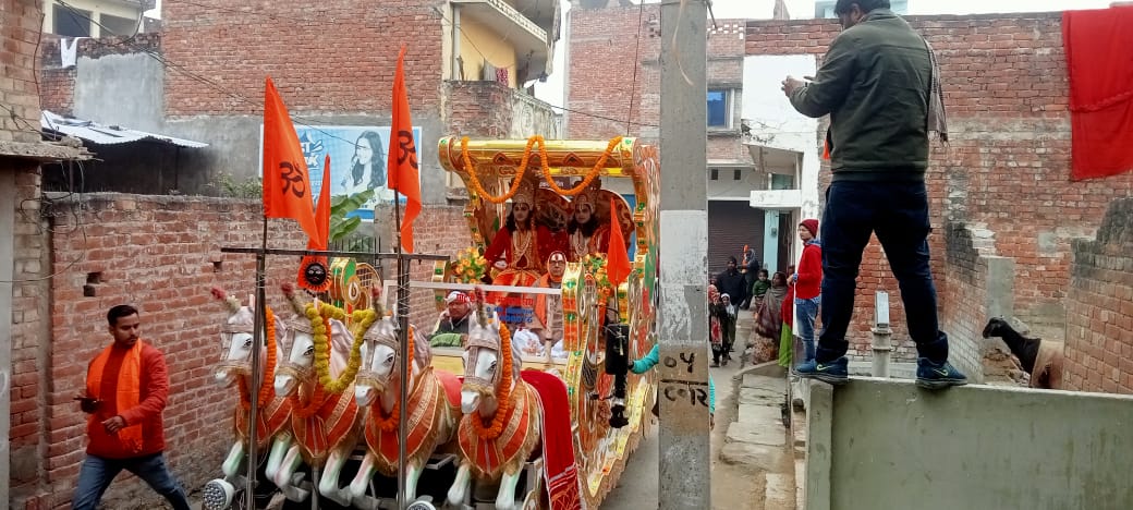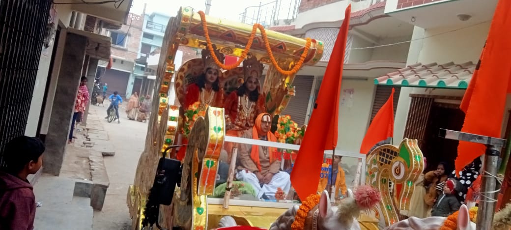 साथ ही शोभा यात्रा के उपर फूलों की वर्षा माताएं बहनों के द्वारा अपने घर के छतो से पुष्प वर्षा की गई, वर्षा की गई। राम भक्तों द्वारा अयोध्या तो अभी झांकी है, मथुरा और काशी अभी बाकी है। इस अवसर पर मंडल प्रभारी आशुतोष सिंह, जिला संयोजक मनोज सेठ, पूर्व विधायक कल्पनाथ पासवान, संदीप सिंह , विरेन्द्र पाण्डेय, भाजपा मंडल अध्यक्ष कृष्ण निहारी सिंह, सुनील जायसवाल, शशांक पाण्डेय, उद्देश्य जायसवाल, पप्पू वर्मा,, व्यापार मंडल अध्यक्ष सुबास जायसवाल, पूर्व व्यापार मंडल अध्यक्ष कमलेश मधुकर, सत्यनारायण सेठ, योगेन्द्र सिंह , परमहंस सिंह, अनुराग पाण्डेय, प्रदीप सेठ, शशिकांत सेठ , सुनील सेठ, प्रगति सिंह महिला मंडल अध्यक्ष , बबिता सिंह, फूला देवी, राजेश तिवारी, राजेंद्र सिंह ,बल्लारी यादव सन्तोष , आदि सैकड़ों लोगों ने भाग लिया,