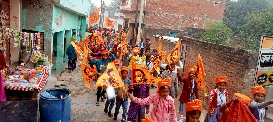 लखरांव पोखरा से निकल कर डीजे, ढोल ताशे के साथ पूरा नगर भ्रमण करते हुए सभी के हाथों में भगवा ध्वज जै श्री राम जै श्री राम का नारे से गूंजते हुए भ्रमण किया।