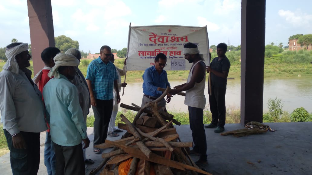 पी. एम. न.369 /2023के तहत बाद पोस्टमार्टम दिनांक 18.09.2023को थाना सराय लखनसी – मऊ द्वारा अन्तिम संस्कार हेतु देवाश्रम को सौंपे गए एक अज्ञात हिन्दू पुरुष के शव की *लावारिस शव यात्रा वतानुकूलित शवालय मऊ से दिनांक *जय शिव जय शव व राम नाम सत्य है * के उद्घोष के साथ देवाश्रम के जिला सलाहकार डा. आशुतोष राय के नेतृत्व में प्रारम्भ होकर सर्वेश्वरी मुक्ति धाम ढेकुलिया घाट श्मशान मऊ पहुंची जहाँ आज दिनांक 18.09.2023 को अपरान्ह 02:20बजे शव को पूरे विधि विधान से जिला चिकित्सालय मऊ के चीफ फार्मेसिस्ट व देवाश्रम के प्रबन्ध निदेशक पी. एन. सिंह द्वारा *मुखाग्नि * प्रदान की गई l