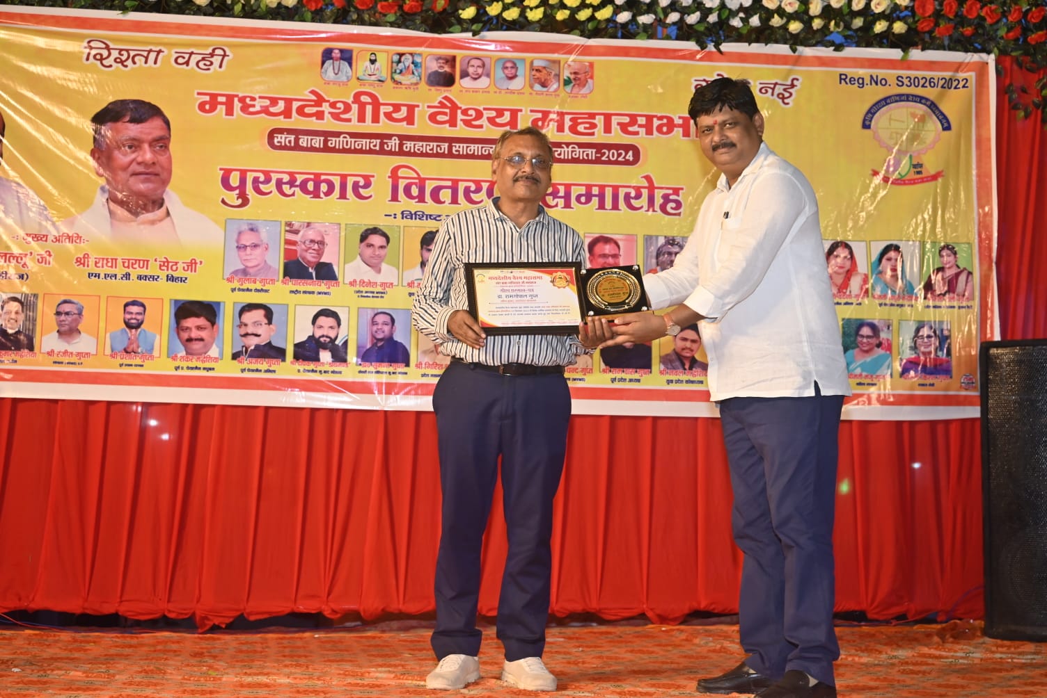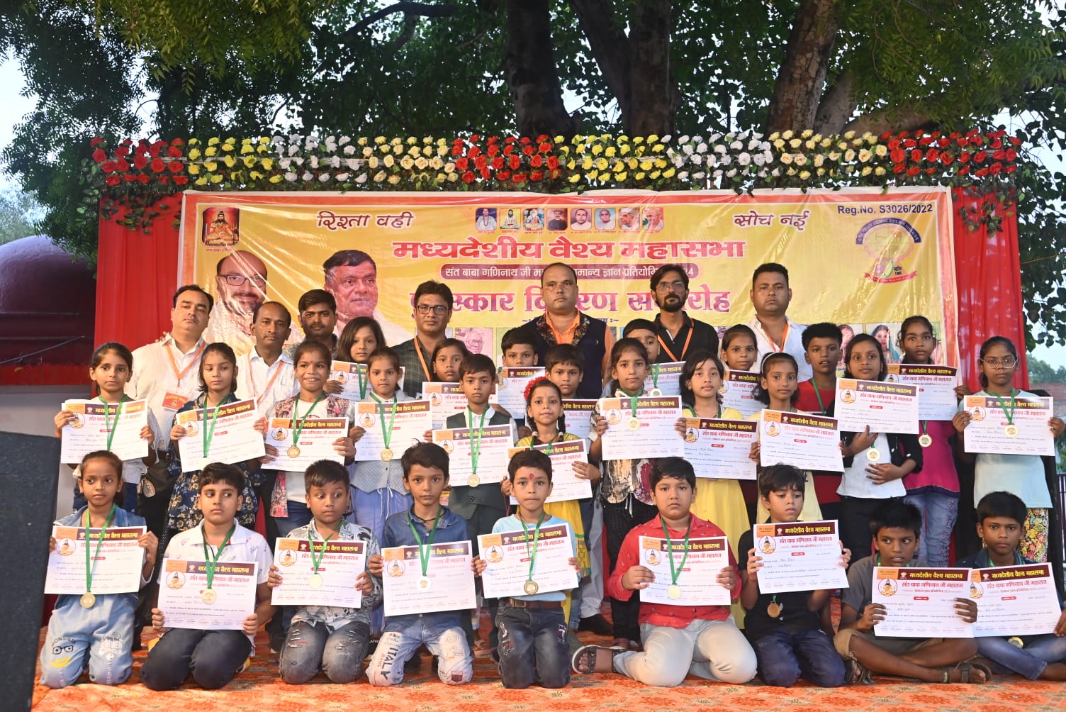 श्री शीतला माता मंदिर के प्रांगण में मध्य देशीय वैश्य महा सभा द्वारा संत गणिनाथ सामान्य ज्ञान प्रतियोगिता का पुरस्कार वितरण समारोह धूम धाम से कराया गया।इसके अंतर्गत नर्सरी से लेकर इंटर तक के बच्चो को सात वर्गो में अलग बाट कर प्रथम द्वितीय तथा तृतीय पुरस्कार स्मृति चिन्ह तथा प्रशस्ति पत्र तथा मेडल पहना कर कार्यक्रम के मुख्य अतिथि तमकुही राज के पूर्व विधायक अजय कुमार लल्लू तथा विशिष्ट अतिथि महासभा के प्रदेश अध्यक्ष मनीष मद्धेशिया अमिला के पूर्व चेयरमैन अजय गुप्ता मधुबन के पूर्व चेयरमैन प्रतिनिधि शंकर मद्धेशिया मनोज गुप्ता जैनेश पंकज मंजू मद्धेशिया किरण मद्धेशिया रोली मद्धेशिया पारस नाथ गुप्ता रामदास गुप्ता आदि ने बच्चो को वितरित किया । इस अवसर पर मुख्य अतिथि ने बच्चो को संबोधित करते हुए कहा कि जीवन में शिक्षित होना अनिवार्य है बिना शिक्षा के कोई भी कार्य नही हो सकता ।मोबाइल के उपयोग पर रोक लगाते हुए उन्होंने अभिभावकों की तरफ संकेत करते हुए कहा कि मोबाइल का उपयोग समयानुसार बच्चो को करने दें । इस अवसर पर सर्व प्रथम कुलगुरु संत गणिनाथ जी बाबा सरजू दास व बाबा पलटू दास के चित्र के समक्ष डा रामगोपाल गुप्त अभिषेक मद्धेशिया हेमराज मद्धेशिया के सहयोग से दीप प्रज्ज्वलित कर पुष्पर्चन किया गया ।इस अवसर पर हर्षित मोहित दीप शिखा आर्यन पलक सूर्यांश निशा खुशी पलक ऋषि अक्षत सागर ओजस पीहू आराध्या काव्या पल्लवी शौर्य तथा अंश गुप्ता को प्रथम द्वितीय तथा तृतीय पुरस्कार क्रमश सभी वर्गो में दिया गया ।ज्ञातव्य हो कि नगर के सेंट जी एन स्कूल में पिछले दिनों आयोजित प्रतियोगिता में लगभग पांच सौ बच्चो ने जनपद के विभिन्न क्षेत्रों से प्रतिभाग किया था ।उक्त कार्यक्रम को सफल बनाने में महत्वपूर्ण भूमिका निभाने वाले क्षेत्रीय अध्यक्ष संजीव गुप्ता अनूप कुमार विनोद गुप्ता संजय कुमार राकेश मद्धेशिया शुभम् गुप्ता तथा प्रायोजक समिति के अनुदानो के लिए नरेंद्र मद्धेशिया सौरभ मद्धेशिया संजय सर्राफ डा रामगोपाल को प्रशस्ति पत्र तथा स्मृति चिन्ह देकर सम्मानित किया गया।कार्यक्रम का संचालन संजय गुप्ता नवनीत गुप्ता ने किया ।कार्यक्रम में मुख्य रूप से अभिषेक मद्धेशिया रोशन गुप्ता राजेश गुप्ता विकास मद्धेशिया मुकेश मद्धेशिया जगदीश मद्धेशिया आनंद गुप्ता श्रवण गुप्ता वेद प्रकाश गुप्ता राम जी गुप्ता दीपक गुप्ता समेत बहुत बड़ी संख्या में अभिभावक गण मौजूद रहे।