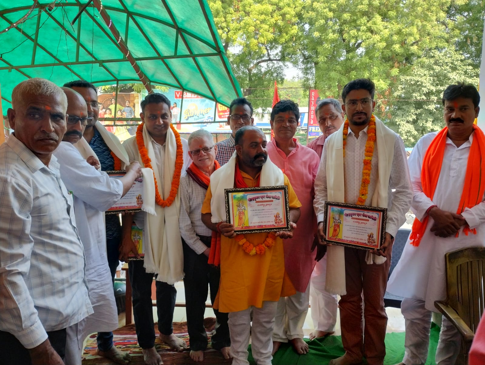 श्री हनुमत कृपा सेवा समिति की शाखा श्री हनुमान गढ़ी मंदिर सेवा समिति बाल निकेतन रेलवे क्रॉसिंग की तत्वावधान में एक सम्मान समारोह आयोजित किया गया जिसमें नगर की विभिन्न प्रतिभाओं को प्रशस्ति सुमन व अंग वस्त्रम देकर सम्मानित किया गया। इस अवसर पर कार्यक्रम संबोधित करते हुए मंदिर समिति के प्रमुख डा राम गोपाल गुप्ता ने कहा कि हनुमान जी महाराज की कृपा से सभी कार्य हो रहे हैं उनकी कृपा से प्रतिभावों को सम्मानित करने का अवसर समिति को प्राप्त हुआ है ।इस अवसर पर सभी प्रतिभाओं डा प्रमोद साहू अमित मद्धेशिया विशाल मद्धेशिया अजय कुमार राजीव सैनी को समिती के प्रमुख राघवेंद्र सिंह सुरेश सिंह कैलाश चंद जायसवाल आनंद गुप्ता बब्बन सिंह मोती लाल विश्वकर्मा राजेंद्र गुप्ता श्री राम लोहिया जे एन सिंह आदि ने अंग वस्त्रम तथा माल्यार्पण करते हुए प्रशस्ति सुमन समर्पित किया ।तथा मंजू गुप्ता को पुष्प गुच्छ दिया गया। इस अवसर पर सभी प्रतिभाओं को संबोधित करते हुए समिति के प्रमुख डा रामगोपाल गुप्त ने कहा कि आज वैज्ञानिक तकनीकी डैक्यूमेंट्री फिल्म प्रशासनिक सेवा तथा सभासद के रूप में सेवा देने वाले हमारे प्रतिभाओं को देश विदेश में मऊ जनपद का नाम रोशन कर रहे हैं जिस पर हम सभी गौरांवित है।आशा ही नहीं अपितु पूरा विश्वास है किश्री हनुमान जी महाराज की कृपा से सभी का भविष्य उज्जवल होगा ।इस अवसर पर मुख्य रूप से विनोद गुप्त अनिल शर्मा सुभाष चन्द्र कनौजिया ध्रुव नारायण गुप्ता जय कृष्ण उपाध्याय अनुपम पांडेय शिव शंकर सिंह स्वामीनाथ गुप्ता मनोज गुप्ता ओम प्रकाश डा रमेश कुमार कैलाश चंद गुप्ता तरुण कुमार दीप गुप्ता अजय मिश्र समेत सैकड़ों लोगों ने प्रतिभाओं को अपना आशीर्वाद दिया।अंत में श्री सुंदर काण्ड पाठ के पश्चात आरती व प्रसाद वितरण किया गया।