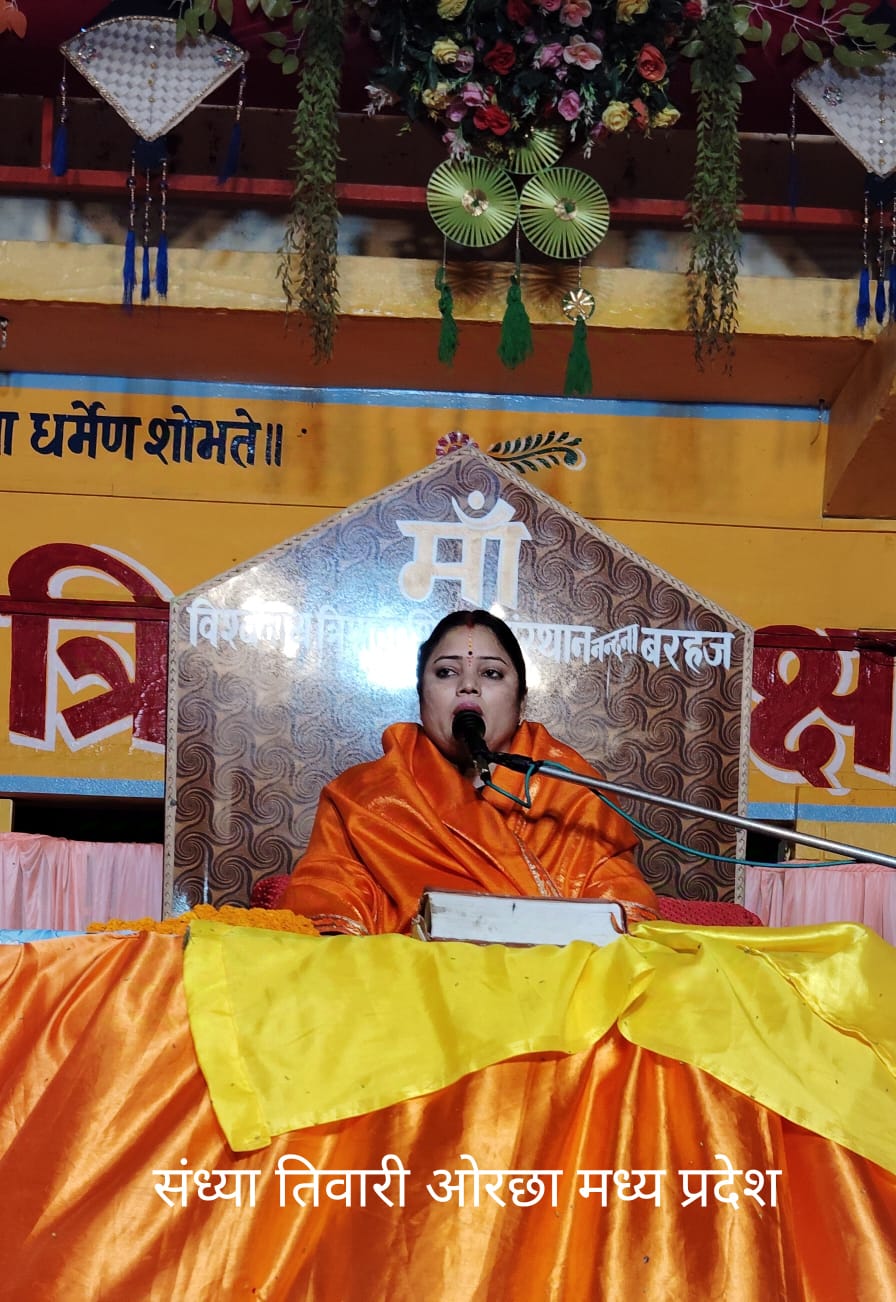 स्वर्गीय विश्वनाथ त्रिपाठी शिक्षण संस्थान में चल रहे, पांच दिवसीय श्री राम कथा में ओरछा मध्य प्रदेश से पधारी कथा वाचिका संध्या तिवारी ने ने कहा कि प्रभु श्री राम जगत के प्रत्येक जीव में निवास करते हैं प्रभु से जो प्रेम करता है प्रभु उसे प्रेम करते हैं जनत प्रीति रिति रघुराई। आगे उन्होंने कहा कि प्रभु कहते हैं कि जिस प्रकार से लोग हमें भेजते हैं बड़े भाग्य से मानव तन प्राप्त हुआ है हम सभी का धर्म है कि हम भगवान से प्रीत करें जितना हम अपने माता-पिता भाई-बहन पत्नी से प्रेम करते हैं उतना ही प्रेम अगर भगवान से जुड़ जाए तो जीवन सफल हो जाए इसीलिए सत्संग का आयोजन होता है कि लोग सत्संग के माध्यम से ज्ञान अर्जित कर सकें भगवान को जान सके और भगवान को मान सके प्रभु को जानना बड़ा सरल है बस आपका हृदय निर्मल हो पूज्य बात गोस्वामी तुलसीदास जी महाराज मानस में रहते हैं कि निर्मल मन जन सो मोहि पावा मोहि कपट छल छिद्र न भावा।। प्रभु से प्रेम करने के लिए मां का निर्मल होना आवश्यक है