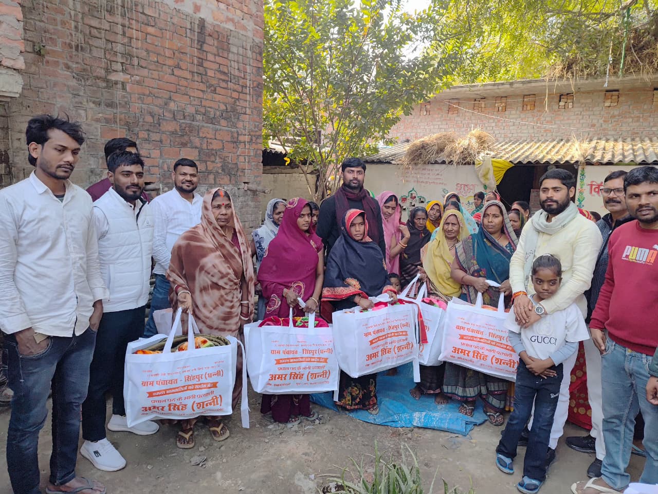 सिंहपुर ग्राम सभा में प्रधान प्रत्याशी ने 300 से अधिक कंबल का वितरण