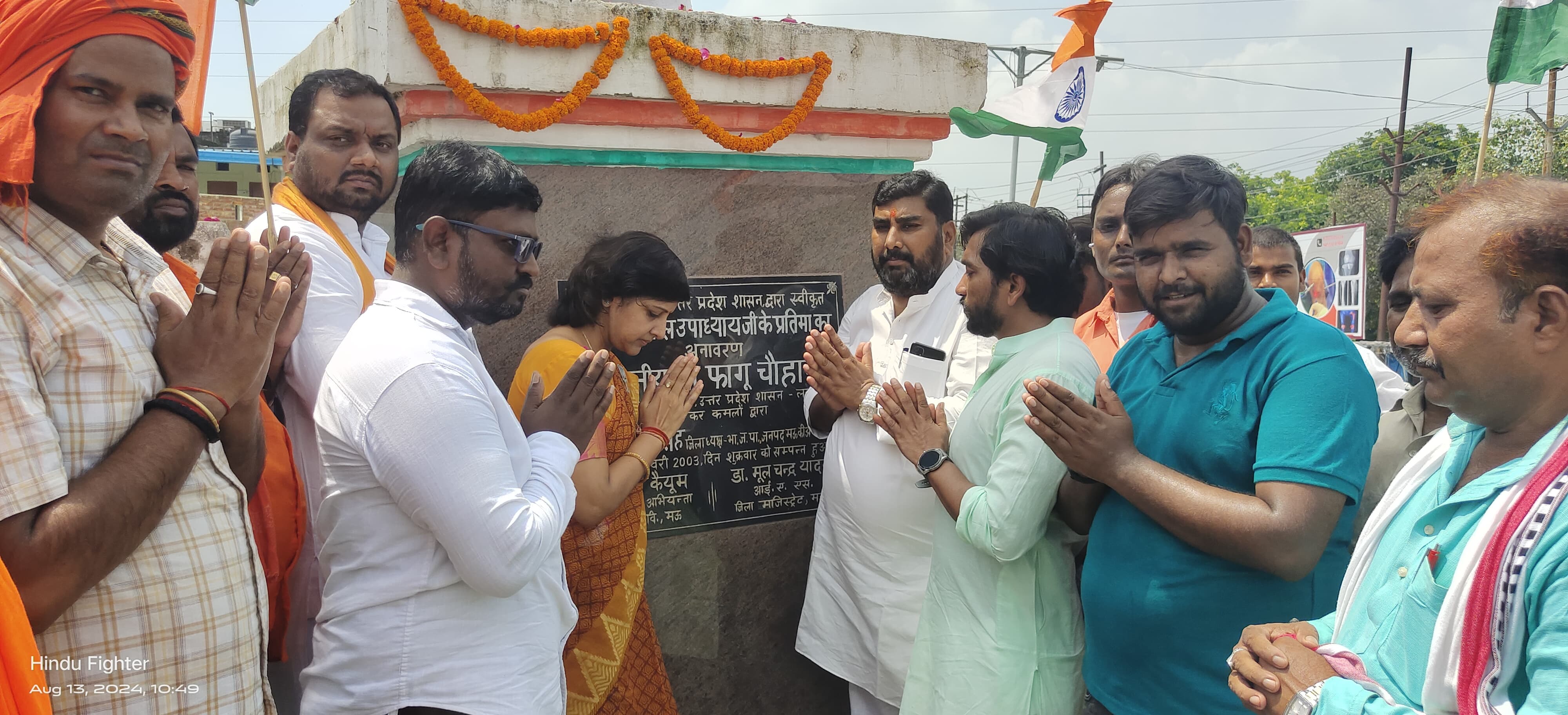 भारतीय जनता पार्टी द्वारा पुरे देश में चलाये रहे हर घर तिरंगा अभियान के तहत मऊ जनपद में प्रत्येक महापुरुषों, शहीद स्मारकों की साफ सफाई करवायी गयी व माल्यार्पण किया गया। इसी क्रम में गाजीपुर तिराहा पर पं० दीनदयाल उपाध्याय की प्रतिमा पर भाजपा जिलाध्यक्ष श्रीमती नुपुर अग्रवाल द्वारा माल्यार्पण व पुष्पांजलि किया गया।