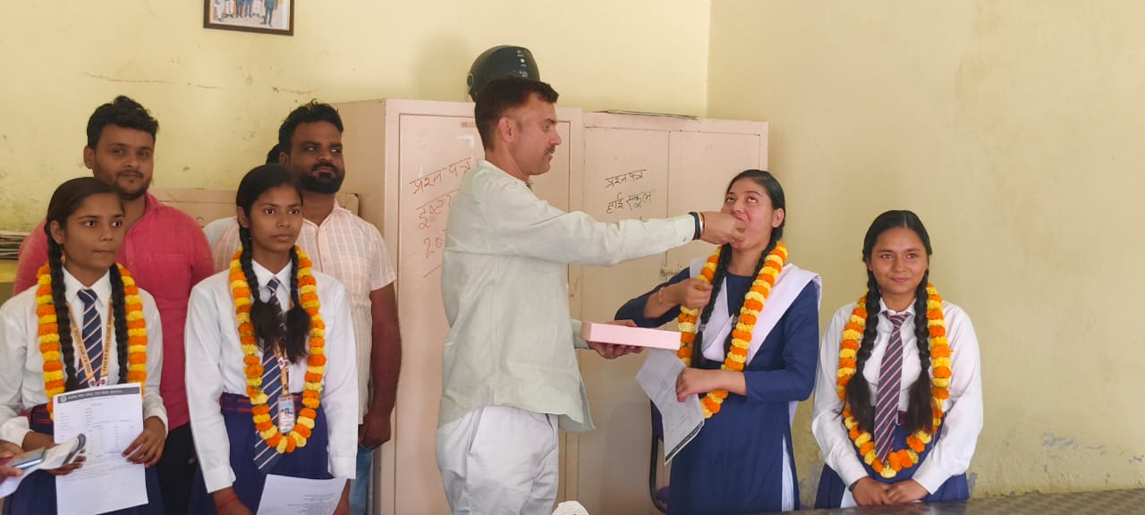 हाई स्कूल और इंटर में अच्छा प्रदर्शन करने वाली छात्राओं को विकास ग्रुप आप कॉलेज के प्रबंधक द्वारा मिठाई खिलाकर किया गया स्वागत