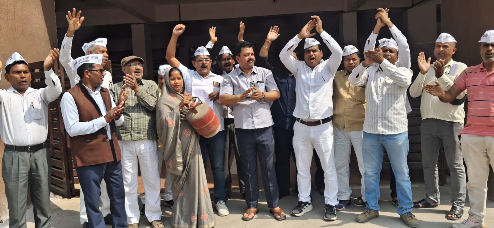 देश में लगातार बढ़ती महंगाई, एलपीजी गैस सिलेंडर की कीमतों में वृद्धि और गैस सिलेंडर की बेहद किल्लत के चलते आम आदमी पार्टी के वरिष्ठ नेता व राज्यसभा सांसद संजय सिंह के आवाह्न पर केंद्र सरकार की आर्थिक नीतियों के विरोध में आम आदमी पार्टी, आजमगढ़ के कार्यकर्ताओं ने शनिवार को जिला कलेक्ट्रेट पर जोरदार प्रदर्शन किया और महामहिम राष्ट्रपति के नाम संबोधित ज्ञापन जिला प्रशासन को सौंपा। पार्टी कार्यकर्ताओं ने आरोप लगाया कि केंद्र की भाजपा सरकार की गलत आर्थिक नीतियों के कारण आज देश की आम जनता न केवल महंगाई और आर्थिक संकट से जूझ रही है, बल्कि गैस सिलेंडरों की भारी किल्लत के चलते एक बार फिर लाइनों में लगने को मजबूर हो गई। जिसका सबसे बड़ा बोझ गरीब और मध्यम वर्गीय परिवारों पर पड़ रहा है।