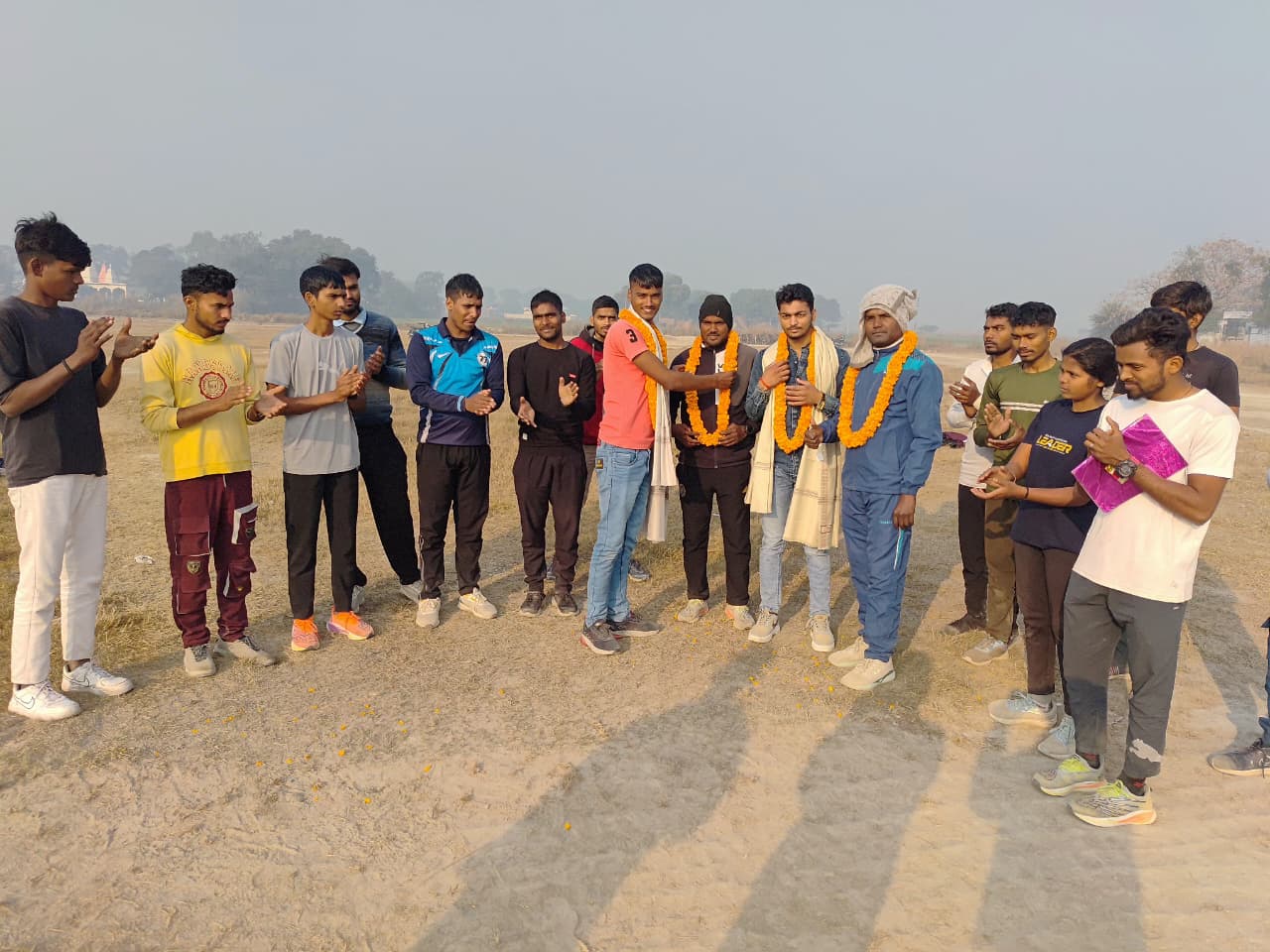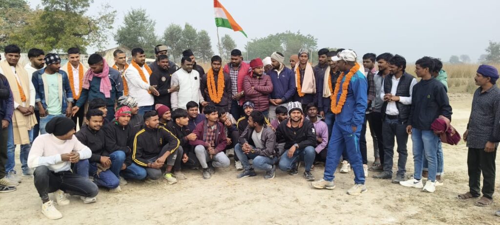 मेहनगर तहसील क्षेत्र के जय मुरारी बाबा ग्राउंड घिनहापुर में बुधवार लगभग 09:00 बजे के करीब अग्निवीर आर्मी जीडी में सलेक्ट हुए युवाओं को कोच नवीन सरोज द्वारा अंग वस्त्र और माला पहनाकर अर्पित यादव, विशाल यादव को उत्साह वर्धन करते हुए सम्मानित किया।