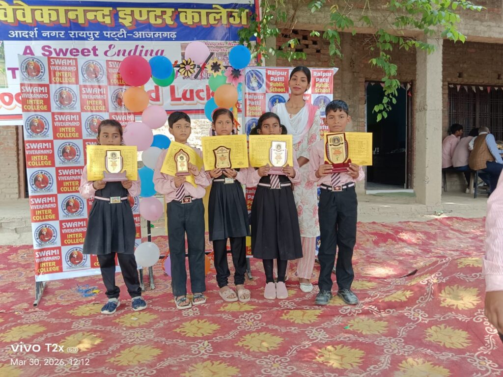 बोंगरिया (आजमगढ़) मेहंनगर तहसील के अंतर्गत स्वामी विवेकानन्द इंटर कॉलेज आदर्श नगर, रायपुर पट्टी आजमगढ़ व रायपुर पट्टी पब्लिक स्कूल का परीक्षाफल एवं पुरस्कार वितरण का कार्यक्रम सोमवार को प्रातः 10 बजे प्रारम्भ हुआ। कार्यक्रम की शुरुआत माँ सरस्वती की प्रतिमा के समक्ष दीप प्रज्वलन कर विद्यालय के प्रबंधक राम सहाय श्रीवास्तव व रमेश विश्वकर्मा ने संयुक्त रूप से की। इसके पश्चात सरस्वती वंदना व स्वागत गीत छात्रों द्वारा प्रस्तुत किया गया। तत्पश्चात परीक्षाफल व कक्षाओं में प्रथम, द्वितीय, तृतीय, चतुर्थ व पंचम स्थान प्राप्त छात्र-छात्राओं को पुरस्कार देकर सम्मानित किया गया।